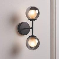 Contemporary stylish wall light with matt black finish and smoke plated glass shades. Supplied with 2 non-dimmable 2.5W warm white G9 LED capsules. IP20: For Indoor Use Warm White Decorative Design 200lm Steel Body Tempered Glass Diffuser Up to 15,000 Hours Life - Manufacturers part number: 99357