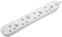 Four individually switched sockets save you power and money. Allows you to plug four items safely into one socket. Ready to use with 13A fused plug and 2m of cable. Individual power indicators show that the power is connected. Provides power where you need it most. 4 sockets with 2m extension cable. 13 amps - . Power indicator. Child-resistant sockets. Suitable for indoor use. Manufacturers 1 year guarantee. EAN: 5015056515656.