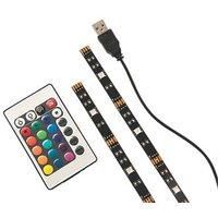 USB-powered LED flexible strips. 16 colour combinations are controlled by an RGB infrared remote control. Features 3M adhesive backing for easy fixing. Ideal for TV and computer display screens. IP20: For Indoor Use RGB 20 Lights per Metre Can be Trimmed to Fit Up to 20,000 Hours Life Modern Design - Manufacturers part number: LUSB50RGB01
