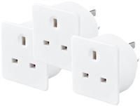 Suitable for use in Australia and Asia, these handy travel plugs convert a UK 3 pin plug into a standard Australian mains plug. This pack of three plugs are an essential holiday item. Single socket. 10 amp. Travel adaptor. Triple pack. Allows your UK plug to be used in Australia. For indoor use. Child resistant sockets. Manufacturers 1 year guarantee. EAN: 5015056622002.
