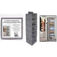 Maximises wardrobe space Folded flat pack size 37cm x 33cm x 3.5cm Folds away quickly and easily when not in use to save on valuable storage space Great for travel Material polyester Approximate measurements 120cm x 30cm x 30cm Two extra-wide straps fit most standard closet rods and helps secure the shelf by providing strong support for the weight beneath | Hanging Storage With 6 Shelves | Wowcher