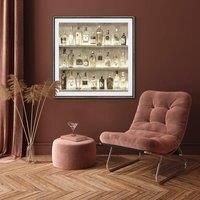 Introducing The Connoisseur by Charlotte Oakley, a stunning framed and glazed artwork that exudes sophistication.Adorned with meticulously crafted raised silver paper printed bottles showcasing exotic Juniper-flavoured spirits, each uniquely shaped bottle bears labels inspired by intoxicating brands from Oakley's imaginative distillery.The bottles are thoughtfully arranged on well-worn, aged shelves, adding a touch of vintage charm to create a captivating scene for your own personal gin joint. This exq... - Manufacturers part number: 30911458