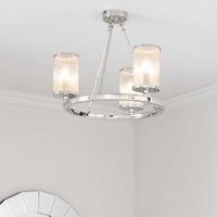 Boasting a unique classic style, this chandelier adds the wow factor to any room. With bright nickel finish and clear ribbed glass shades with bubble details, this chandelier is the perfect touch of elegance and style. This light is dimmable and is perfect for use with W14 LED lamps. - Manufacturers part number: 30707473