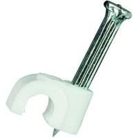 Pack of 50 round 4mm clips in white with hardened steel fixing nail.