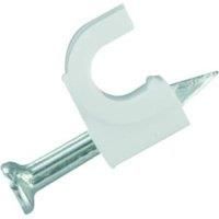 Pack of 50 round 5mm clips in white with hardened steel fixing nail.