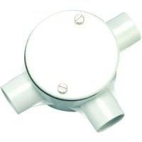 Robust tee junction box joins 20mm conduit at a T-junction. Allows the fitting of round accessories.