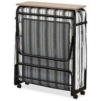 British made with lifetime frame guarantee J-Tex sprung base system for complete durability, support and comfort breathable airflow fibre mattress exceeds british and european safety standards legs automatically open when unfolded 360 castors for easy manoeuvrability durable epoxy paint finish suitable for regular use. Automatic folding legs. Steel with . Size as bed W122, L196, H51cm. Size folded H97, W122, D29cm. Airflow Polyester. Medium feel mattress. Mattress depth 10cm. Weight 29.9kg. Minimal asse...