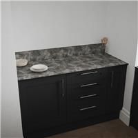 "12mm compact laminate, the ultimate solution for your kitchen or workspace needs. * Pre-fabricated, ready to fit, quicker to fit * A sleek black core, giving your home a modern look * Slender in both design and shape * Supplied with smooth factory machined edges, all finished by hand * 10 Year Manufacturers Guarantee" Create a stylish new look for your kitchen with this Mariz work surface. The beautiful Dark Concrete pattern will bring out the best in your units and cabinets, and can be paired up wit...