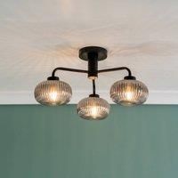 Illuminate your space with this three way ceiling light fitting. Suiting any living room, bedroom or bathroom this ceiling light features statement metal with ribbed glass shades. The shades not only provide a stylish look but also diffuses the light softly, creating a cosy atmosphere. With a perfect balance of style and functionality, this light brings a touch of modern glamour to any space. - Manufacturers part numbers: 26694|ValueLights_5016529266945