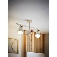 ValueLights Parker Cream And Walnut 3 Way Ceiling Light Say hello to stylish lighting with the Parker ceiling bar spotlight! With a glossy finish and walnut effect touches, Parker brings high-end vibes to your ceiling. The three adjustable spotlights let you aim the glow exactly where you want it, no more gloomy corners! Available in chic sage green or classy cream, it's the perfect mix of fashion and function. Parker's here to light up your life (and your room) with serious flair. Depth: 120 MM Heigh... - Manufacturers part numbers: 27306|ValueLights_5016529273066