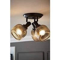 The Calpe ribbed glass ceiling spotlight combines classic design with flexible functionality. Featuring three adjustable spotlights, it allows you to direct light precisely where its needed from kitchens and hallways to living rooms and dining areas. Ribbed glass shades diffuse the light beautifully, while the choice of antique brass with clear glass or matte black with smoked glass ensures versatility for both traditional and contemporary interiors. Pair with other Calpe designs for a coordinated, design-led finish throughout your home. | ValueLights Calpe 3 Way Glass Shade Adjustable Spotlight Ceiling Light in Black - Manufacturers part numbers: 27416|ValueLights_5016529274162