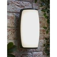 The Jonny outdoor wall light delivers a strong 1400 lumens of neutral white light, making it an effective solution for brightening entrances, patios and outdoor living areas. Featuring a curved design with a diffused front panel, it provides wide illumination while reducing glare. With an IP54 rating for weather resistance and mains wired for dependable performance, Jonny is a robust, practical and stylish option for exterior lighting. | ValueLights Jonny Curved Matte Black IP54 LED Outdoor Wall Light