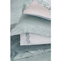 Introduce classic elegance to your bedroom with Atea. This cotton rich jacquard design features an eye-catching floral pattern in an on-trend colourway. The range also includes embroidered standard pillowcases, curtains (66"x72") and a generously sized quilted throw. Layer the fringed throw and embroidered cushion over this indulgent bedding to create a relaxing sanctuary. | 1951 'Atea' Standard Pillowcase Pair in Duck Egg Blue | Size: Standard Pillow Case
