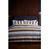 Go bold with the Juna stripe in 100% cotton. A graphic horizontal stripe design in strong shades of blue, navy, yellow and mulberry. The upbeat reverse has a repeat of abstract shapes in yellow and off-white for an added touch of Scandi chic. | Helena Springfield 'Juna' Cotton Duvet Cover Set | Size: Double - Manufacturers part number: Helena Springfield_5016709712637