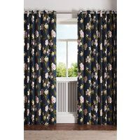 Bring effortless elegance to your windows with the Opal Floral curtains. Crafted from textured cotton, the digitally printed design showcases oversized blooms in stunning detail, giving every petal a sense of depth and artistry. The result£ A laid-back yet sophisticated statement that suits both modern and classic interiors. Finished with matte silver eyelets and fully lined for the perfect drape, these curtains are available in six versatile sizes to fit your space beautifully. | Ted Baker 'Opal Floral' Cotton Lined Curtains in Navy | Size: 168cm width x 229cm drop - Manufacturers part number: Ted Baker_5016709730037