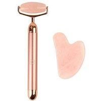 Love My Skin Facial Sculpting Set Each tool is made of natural Rose Quartz to awaken your natural glow. Start off your experience with a gentle sculpt with your Gua Sha Stone which manipulates areas of tension to stimulate and alleviate stress-related symptoms. Follow up with a luxurious massage from the Rose Quartz vibrating roller which works over 6000 sonic vibrations per minute, leaving your skin toned and sculpted revealing a brighter, rejuvenated complexion. Depth: 15 MM Height: 165 MM Width: 50 M...