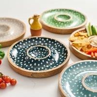 * Made from Mango wood* Perfect for serving tapas, crisps, nuts, crackers & snacks* Enamelled, hand-finished interior* Inner well for dips* Ideal for outdoor dining and entertaining This mango wood chip and dip bowl is ideal for serving tapas, crisps, nuts, crackers, and snacks. Crafted from mango wood, it features an enamelled, hand-finished interior. The inner well is perfect for dips, making it an excellent choice for outdoor dining and entertaining. - Manufacturers part number: 30923315