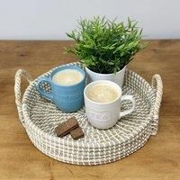 * Handwoven* Made from natural seagrass* Lovely decor piece Bring a touch of natural charm to your home with the Sintra Seagrass Tray. Handwoven from eco-friendly seagrass, each piece showcases the beauty and craftsmanship of sustainable materials. The durable white plastic binding adds strength and a fresh, modern look. With sturdy handles, its ideal for serving drinks, snacks, or organising your essentials with ease. Practical and versatile, it wipes clean effortlessly to keep it looking its best. A s... - Manufacturers part number: 30993511