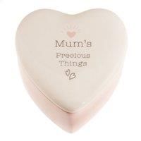 * Heart Shaped Box* Perfect for Holding Trinkets* Made from Ceramic Treat your mum this Mother's Day with the Mum's Precious Things Trinket Box. Shaped like a heart, it's the perfect place for her to store her beloved items. - Manufacturers part number: 30984619