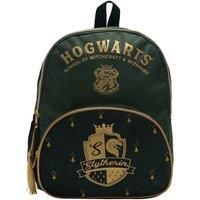 A Slytherin alumni backpack, official licensed Harry Potter merchandise. Embrace the wizarding world of Harry Potter, like never before with this durable green bag with gold printed Slytherin and Hogwarts logos. Offers ample storage space inside which is complemented by a felt covered front pocket, comfy shoulder straps, coat peg hook, water bottle side compartment and a gold tassel zip to the main storage area. Comes packaged in a hangtag/PP bag. - Manufacturers part number: 30963305