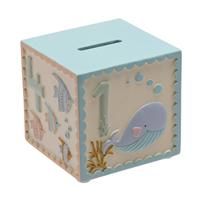 Introducing an exquisite resin sea cube money box from Petit Cheri, proudly presented by CELEBRATIONS. This stunning money box is designed to be a lasting treasure, destined to be cherished for generations. Crafted from resilient resin, the cube-shaped money box boasts a subtle off-yellow exterior finish. It features four sides, each adorned with delightful embossed underwater scenes, featuring fish, crabs, and a charming whale. On top, you'll find a blue lid with a coin slot, and for easy access, a ru... - Manufacturers part number: 30932963