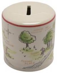 A Winnie the pooh ceramic money box from Disney. This wonderful money box features the instantly recognizable Winnie the pooh characters and brightens up saving for a rainy day. The eye-catching, ceramic money box features perfect white colouring, complete with individual printed illustrations of Winnie the pooh and friends. The money slot is located on top, whilst its easy-to-remove rubber plug sits on the base for the easy retrieval of funds. The money box is packaged in a kraft box with window. Ceram...