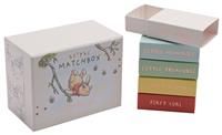Introducing the DISNEY Winnie the Pooh Matchbox Keepsake Box. This endearing collection transforms into a cherished keepsake, infused with the timeless enchantment of Disney. The compact, sturdy white cardboard box showcases delightful illustrations of Winnie the Pooh and bears the inscription 'Little Matchbox Memories' on its hinged lid. When opened, it reveals five colourful matchboxes designed for capturing various 'first' moments, complemented by a 'These Memories Belong To' area for personali... - Manufacturers part number: Disney_