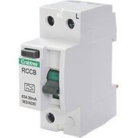 Plug-in RCCB. Single phase with fully shrouded terminals. Contact position indication on dolly handle. Plug-In Fitting Type A Curve Double Pole 50mm Terminal Capacity - Manufacturers part number: GB6SF363A030