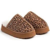 Just Sheepskin Ladies Mabel Sheepskin Platform Mule Slipper - Chestnut Animal