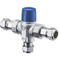 Thermostatic mixing valve to supply pre-mixed water to a set temperature for a basin, bidet, bath or shower. Designed to be positioned under basin or bidet immediately below the hot water inlet. Automatically shuts off if cold supply fails. Automatic Shut-Off Cold Supply Fails Precise Temperature Control - Manufacturers part number: A5900AA