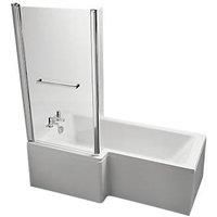 Spacious shower bath with matching curved shower screen and front panel. Gently sloping ergonomic design offers a contemporary space for relaxation. Contemporary Design Bath Overflow Capacity: 190Ltr No Tap Holes 5mm Thickness Model No: E225701 25 Year Manufacturer's Guarantee (T&Cs Apply) Integrated Shelf Water-Efficient Design Spacious Ergonomic Design - Manufacturers part number: E225701