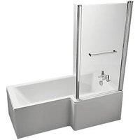 Spacious shower bath with matching curved shower screen and front panel. Gently sloping ergonomic design offers a contemporary space for relaxation. Contemporary Design Bath Overflow Capacity: 190Ltr No Tap Holes 5mm Thickness Model No: E225801 25 Year Manufacturer's Guarantee (T&Cs Apply) Integrated Shelf Water-Efficient Design Spacious Ergonomic Design - Manufacturers part number: E225801