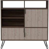 This Nevada High Sideboard with Hairpin Legs is a great way of maximising storage space in your dining room, living room or even hallway.The modern sideboard features 3 adjustable doors and 6 shelves to both conceal and display items such as crockery, books and home decor.Made from a hardwearing melamine finish, this high sideboard is both durable and easy to clean and features a bleached oak effect with contrasting grey oak finish and metal hairpin legs.. Modern design. Open and closed storage. 3 adjustable doors. 6 shelves. Durable melamine finish . Easy to clean. Metal hairpin legs. Approximate dimensions (mm) H103 W1058 D340. Weight 39kg*Self Assembly Required*Please note that this product is delivered direct from our supplier and may take a little longer to arrive - Manufacturers part number: NE916