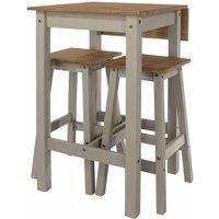 Where space is at a premium this solid wood casual dining set is ideal. The compact bar table has a lift up leaf to provide extra surface area when needed, supplied with 2 matching high stools all finished with grey waxed underframes and antique waxed top surfaces. Features: Solid Pine Grey wash wax frame with antique wax top and seats Steel assembly bolts for stength and stability Drop leaf on table Allen key assembly fitting supplied Specifications: Dimensions: H:100.0 x W:60.0-100.0 x D:60.0 cm Colou... - Manufacturers part numbers: CRGTBSET9|Core Products Ltd_