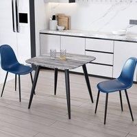 The Aspen small dining set is perfect for compact dining or kitchen areas. It features an 80 x 80cm curved-edge table top in grey oak-effect MDF with tapered black steel legs, complete with adjusters for uneven floors. The set comes with two plastic curve chairs in your choice of five colours, featuring a modern design, contoured seats, and tapered steel legs with floor protectors. Its modern design with soft rounded corners makes it ideal for small spaces, and the set is supplied flat-packed for easy h...