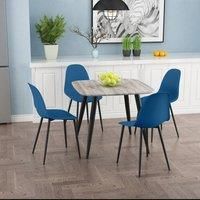 The Aspen small dining set is perfect for compact dining or kitchen areas. It features an 80 x 80cm curved-edge table top in grey oak-effect MDF with tapered black steel legs, complete with adjusters for uneven floors. The set comes with four plastic curve chairs in your choice of five colours, featuring a modern design, contoured seats, and tapered steel legs with floor protectors. Its modern design with soft rounded corners makes it ideal for small spaces, and the set is supplied flat-packed for easy ...