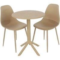 A compact and affordable bistro style table and two chair set which is ideal for use indoors or outdoors. The set is made from high grade moulded plastic which contains a UV inhibitor to delay the colour fading effect of sunlight. Legs are manufactured from steel with a weather resistant colour matched paint. Features:. Ideal for use indoors or outdoors.. Contains a special UV formula to delay colour fade.. Plastic moulded table.. Plastic moulded seat with metal legs.. Easy to assemble.Dimensions:. Height: 76.3cm / 82cm. . Width: 60cm / 52cm. . Depth: 60cm / 46cm. . Weight: 12.5kg. - Manufacturers part number: GRDTC101-SN
