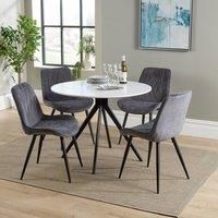 Core Products Aspen White Round Dining Table with 4 Diamond Fabric Chairs - Set in Grey