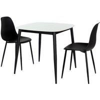 The Aspen Gloss White Sintered Stone Square Dining Set features a sleek, durable white table paired with two curve plastic chairs designed for everyday use and easy cleaning. Chair colors are available in blue, black, calico, grey, and white, giving you options to match your dining space. Perfect for meals, casual gatherings, or working from home, this set combines modern style with practical functionality. | Core Products Aspen White Sintered Stone Table with 2 Curve Plastic Chairs - Set in Black