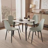 The Aspen White Sintered Stone Square Dining Set combines a sleek, easy-to-clean white sintered stone table top with four Curve dining chairs, each available in black, blue, calico, white, and grey. The chairs feature a comfortable curved plastic seat on sturdy metal legs, while the table offers a modern, durable design. Perfect for everyday meals or casual gatherings. | Core Products Aspen White Sintered Stone Dining Table with 4 Curve Dining Chairs Set in Grey