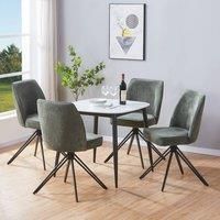 The Aspen Gloss White Sintered Stone Square Dining Set features a sleek, durable white table paired with four swivel upholstered fabric chairs designed for comfort and easy movement. Chair colors are available in green and light grey, giving you options to match your dining space. Ideal for meals, casual gatherings, or working from home, this set combines modern style with practical functionality. | Core Products Aspen White Sintered Stone Square Table with 4 Swivel Chairs - Set in Green
