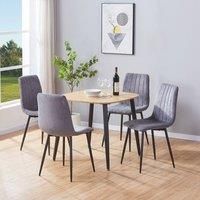 The Aspen Light Oak Square Dining Set features a sturdy Light Oak table and four straight stitch upholstered fabric chairs designed for comfort and everyday use. Chair colors are available in blue, grey, light grey, and natural, giving you options to match your dining space. Perfect for meals, casual gatherings, or entertaining guests, this set combines modern style with practical functionality. | Core Products Aspen Light Oak Effect Dining Table with 4 Straight Stitch Chairs Set in Grey