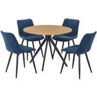 The Aspen Light Oak Round Dining Set features a sturdy round table with a light oak finish and four diamond stitch upholstered fabric chairs designed for comfort. Chair colours are available in blue, grey, light grey, and natural, allowing you to choose the perfect look for your dining space. Ideal for everyday meals, casual gatherings, or entertaining guests, this set combines contemporary style with practical functionality. | Core Products Aspen Light Oak Round Dining Table with 4 Diamond Stitch Chair...
