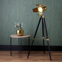 * Bulb required: 1 x SES (Small Edison Screw) - E14* Bulb(s) not included* Available in a selection of colours* Adjustable Head* 3m cable with a Foot Switch The Hereford Tripod Floor Lamp brings Hollywood glamour to your home, featuring a black wood colour finish with a choice of gold and silver accents. With its film light head and shutters, this statement floor lamp adds a touch of cinematic style to any room. - Manufacturers part number: 30889340