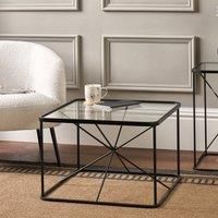 * Crossed black metal frame* Inset clear glass top* Curved corners This coffee table is a modern piece that combines practicality with contemporary design. The crossed black metal frame provides a sturdy and stylish foundation, while the inset clear glass top adds a touch of elegance. Its curved corners and sleek design make it a perfect centerpiece for any living room, offering both functionality and aesthetic appeal. - Manufacturers part number: 30931590
