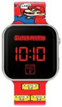 Super Mario Nintento Super Mario Printed Strap LED Watch Nintendo Super Mario LED watch with printed red strap, silver plastic casing, red digital light up display, date feature and fun printed strap design with traditional buckle fastening. Packaged in official branded packaging and comes with one year guarantee. 24Hr Display: Y Depth: 10 MM Height: 215 MM Width: 35 MM Age Range: 6+ Case Diameter (in cm): 3.5 Case height (in cm): 1 Case Length (in cm): 3.5 Case Shape: Square Case Width (in cm): 3.5 Fas... - Manufacturers part number: _