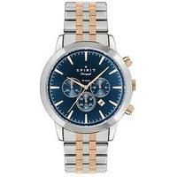 Spirit Gents Polished Silver & Rose Gold Chronograph Bracelet Watch Featuring a dual plated finish, Spirit Gents Polished Silver & Rose Gold Chronograph Bracelet Watch leaves a lasting impression. The navy sunray dial is complimented with rose gold dial features, a functional chronograph and date window, combining accurate timekeeping with masculine charm. Finished with a semi solid capped stainless steel bracelet, this timepiece commands attention. - Stainless steel - Dual Plated - Functional Chronogra...