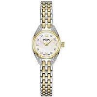 Rotary Ladies Cocktail Mother Of Pearl Stone Set Dial Silver & Gold Plated Stainless Steel Bracelet Watch The Rotary Cocktail, a delicate ladies' watch that epitomizes elegance and refinement. The petite 20mm two-tone case embraces a silver dial. Embellished with crystal indices, this watch sparks iridescence that catches the light beautifully. The silver dial is adorned with gracefully applied gold Roman numerals and hands, creating a harmonious blend of sophistication and grace. Encased within scratc...