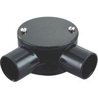 Robust, heavy gauge material angle box, joins conduit lengths at an angle. Allows the fitting of round accessories. uPVC Construction For use with 25mm Round Conduit - Manufacturers part number: 57649