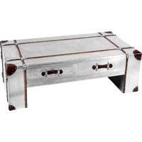 Introducing the Orsina rectangular coffee table, a statement piece that effortlessly blends modern industrial style with captivating aviation flair. This handcrafted silver coffee table boasts a unique weathered finish that offers an upcycled vibe. The industrial influence of this coffee table with storage continues with symmetrical lines of rivets, metal clasps, and decorative metal side handles, creating an elegant centerpiece for your living room. Sophisticated touches elevate this large coffee table...